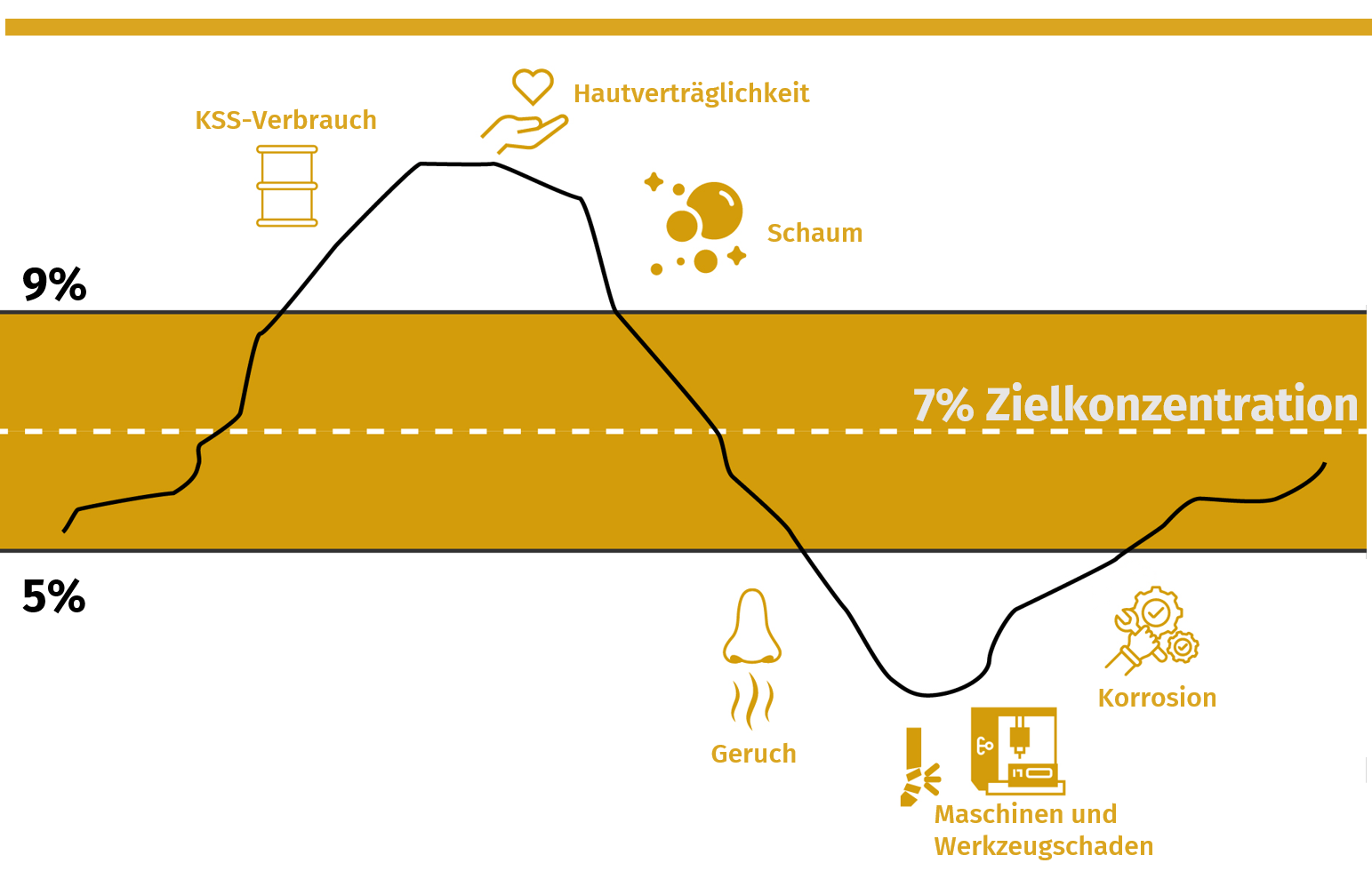 Eine zu geringe Konzentration des Kühlschmierstoffes kann dazu führen, dass die Schutzwirkung gegen Korrosion nachlässt. In solchen Fällen ist der Anteil an schützenden Additiven im KSS nicht mehr ausreichend, um die Metalloberflächen vor Korrosion zu schützen. Dies führt zu einer erhöhten Anfälligkeit der Werkzeuge und Maschinen für Rost und andere Korrosionsarten.